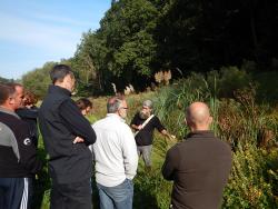 Un deuxième volet de formation a eu lieu au mois d'octobre 2014, il a touché une 50aine de personnes (techniciens et élus). L’objectif était d’accompagner le nouveau réseau de terrain, de maintenir le dynamisme lancé et d’accompagner la montée en compétence de ces personnes. Le secteur de Palaren a été choisi comme terrain de « jeu » pour ces ½ journées de formation. En une ½ journée, il a été possible d’observer un panel important d’espèces invasives. Ces nouvelles journées sont également l’occasion d’identifier les espèces encore très peu présentes sur le territoire du BV de l’Elorn, pour pouvoir agir très rapidement en cas de nouvelle colonisation.