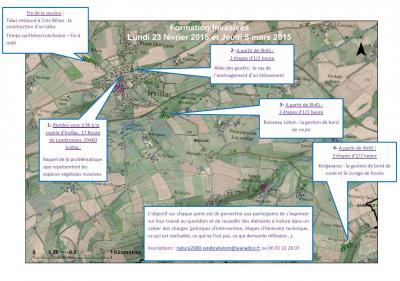 La commune d'Irvillac accueillait ces journées de formation (accueil et accompagnement par Patrick Le Hénaff, élu d'Irvillac). Pour débuter,  une présentation d'1/2 heure était faite en salle (rappel de ce que c'est une espèce invasive, quelques éléments sur son écologie).