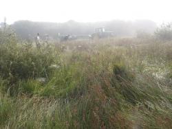 L'entreprise Diveres (d'Irvillac) a commencé les travaux de restauration de landes et tourbières du site Natura 2000, le 29 août 2013, sous le brouillard.